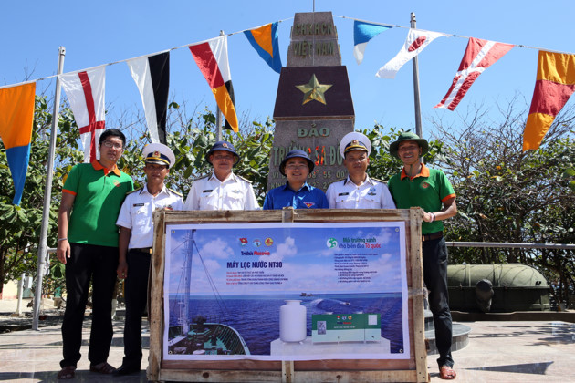 Выставка состоит из трёх частей: "Сила жизни на островах Чыонгша", "Краски молодости" и "Суверенитет над морем и островами". (Название: Вручение устройства для очистки воды. Автор: Le Lam)