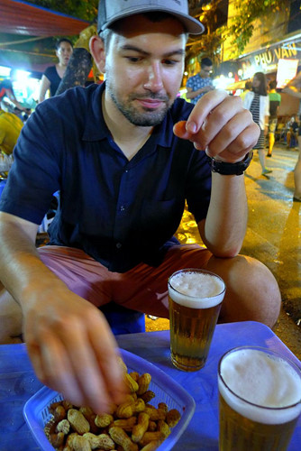 | Местные жители угощают своих друзей пивом. |