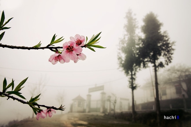 Цветущее персиковое дерево перед пограничной заставой Вангмачай.
