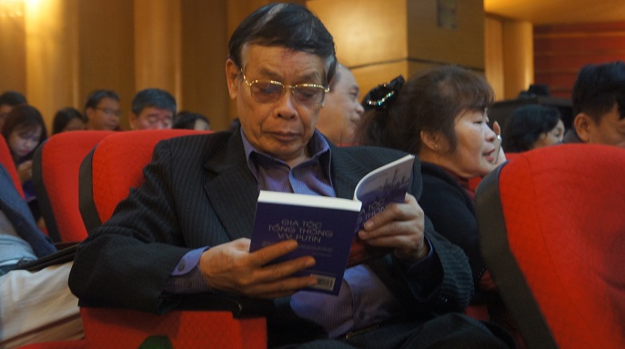 | Зампредседателя НС СРВ Уонг Чу Лыу, гендиректор Радио "Голос Вьетнама" Нгуен Тхе Ки, представители Общества российско-вьетнамской и Общества вьетнамо-российской дружбы присутствуют на презентации книги "Род Президента В.В.Путина" на вьетнамском языке |