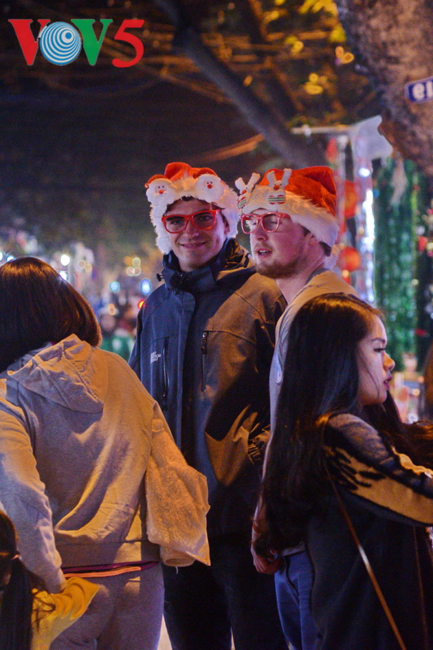 Иностранные туристы знакомятся с уникальной рождественской атмосферой в Ханое.