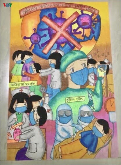 Вышеуказанные творческие работы учащихся школы Доан Тхи Дием являются хорошей мотивацией для борьбы с короновирусом.