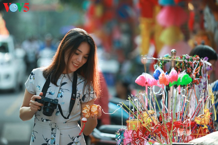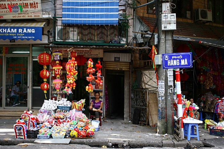 На улице Ханг-Ма продаются детские игрушки. Здесь особенно оживлённо в преддверии детского праздника середины осени по лунному календарю.