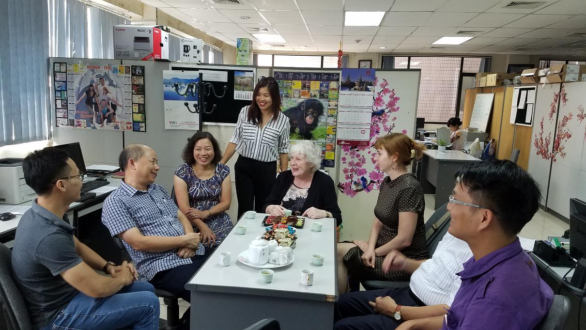 Татьяна Ивановна Румянцева (в центре) вместе с руководителями и сотрудниками канала иновещания радио "Голос Вьетнама".