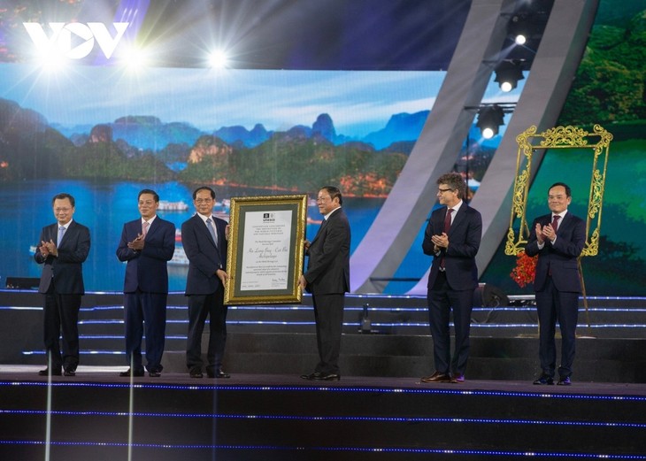 Представитель ЮНЕСКО вручил сертификат о признании залива Халонг (провинция Куангнинь) и архипелага Катба (город Хайфон) первым межпровинциальным объектом Всемирного природного наследия во Вьетнаме. Фото: VOV |