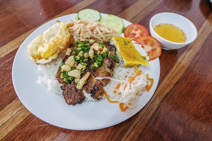 Комтам (битый рис) - это быстрое и простое уличное блюдо почти всех ресторанчиков в Хошимине. Комтам подают с жареной / приготовленной на пару / тертой свининой (обычно жареной), рыбой или просто жареным яйцом. Это вьетнамское блюдо было бы не полным без сока выжатого лайма, небольшого количества свежих трав и зеленого лука.