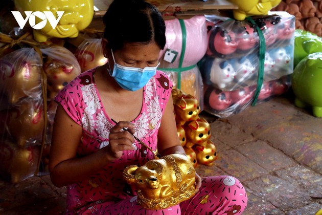 После обжига эти глиняные «буйволы» обычно продают в городах Ту Дау Мот и Тхуанан ремесленникам, которые затем раскрашивают их в золотой цвет на заключительном этапе. |