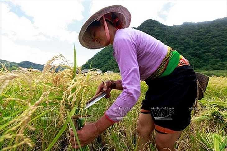 Сезон сбора урожая в Лунгване. Местные жители до сих пор сохраняют много уникальных культурных особенностей, в том числе народные костюмы. Фото: Фото: VNA.