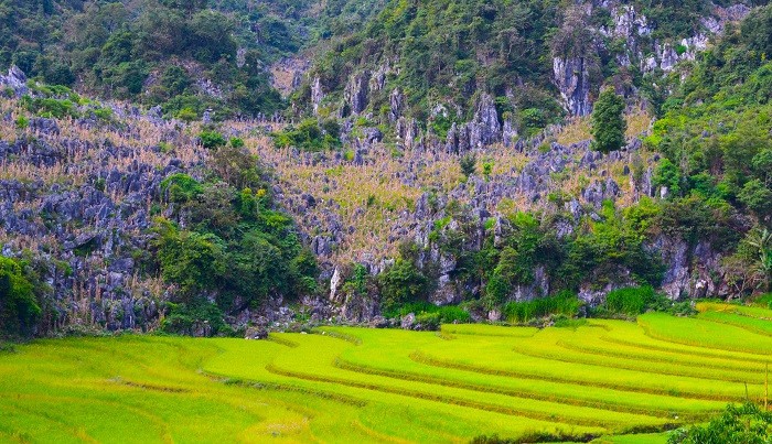 Золотые цвета осени на террасных полях создают редкую красоту. (Фото: dulichdienbien.vn).