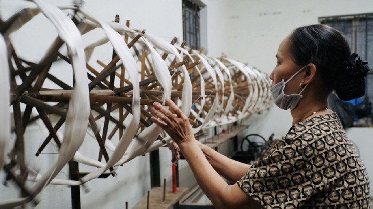 Качество шелка Нха Ха объясняется непревзойденным вниманием ткачей к его деталям. Фото: vietnamhoinhap.vn |