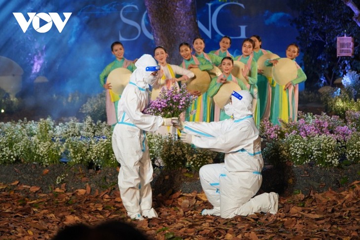 В ходе программы был показан номер, посвященный тяжелым дням борьбы с пандемией в городе Хошимин во время социального дистанцирования.