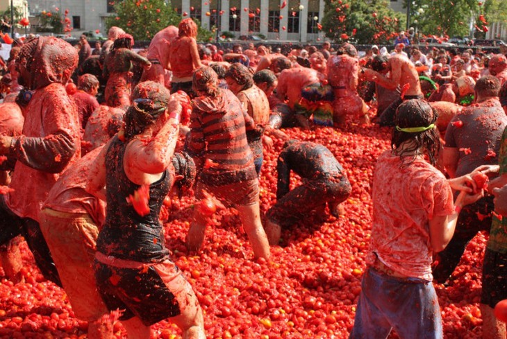 Томатина, в Испании известная как фестиваль La Tomatina – один из самых популярных и посещаемых испанских праздников, получивший известность во всем мире. Праздник Томатина проходит в городе Буньоле провинции Валенсия и является крупнейшим фестивалем помидоров в Испании, во время которого более 150 тонн томатов в час превращаются в сок, разливаясь по городским улицам и окрашивая каждого участника события. Фото: Cal Neva. |