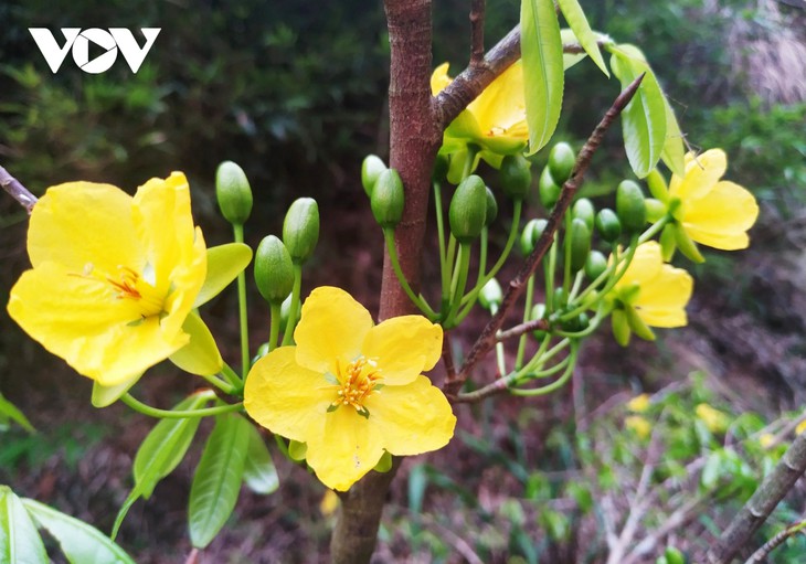 Весной многие люди хотят добраться до вершины горы Йенты 9 (города Уонгби провинции Куангнинь), где находится бронзовая пагода «Донг», чтобы полюбоваться уникальными и красивыми желтыми абрикосовыми цветами.