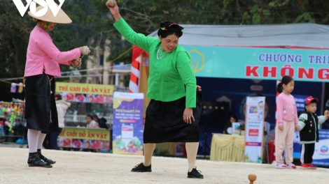 (VOVWORLD) - Во время Новогодних и других праздников во дворе дома культуры каждого селения и населенного пункта в уезде организуют игру тыккханг, и сюда приходит очень много женщин, чтобы поиграть, так же как и сельчан, чтобы посмотреть и поддержать игроков.