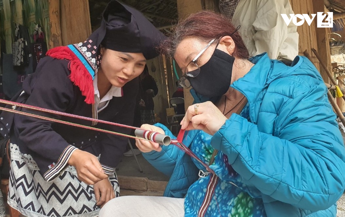 Г-жа Чиеу Тхи Тиен – работница из деревни Сын коммуны Каосон сказала: «Мы разделились на несколько групп, чтобы организовать мероприятия для посетителей. Этапы изготовления изделия включает в себя окрашивание, вышивку, печать пчелиным воском и вышивание. Эти продукты посетители могут привезти домой на память. На деньги за продажу продукции мы покупаем оборудование для развития ткацкого ремесла. Этот результат был достигнут благодаря помощи компании г-жи Динь Тхи Хао».