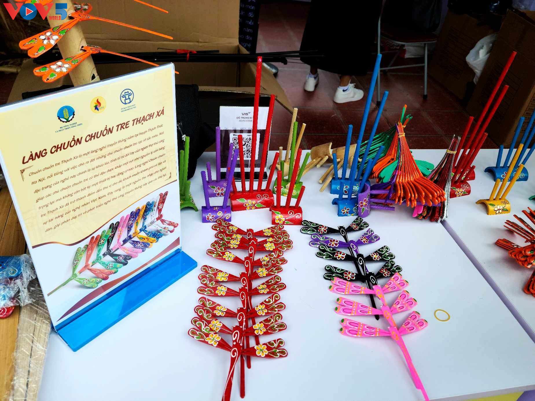Изделия традиционных ремесленных деревень Ханоя, представленные на Фестивале, включают керамические изделия, произведенные в Батчанге, шелковые изделия из деревень уезда Мидык, вышивку, сделанную мастерами деревни Tхыонгтин, мебель, изготовленную в деревне Каньнау, Тохе – вьетнамскую детскую традиционную игрушку, сделанную в деревне Суанла, изделия из ротанга и бамбука из деревни Фувинь, лаковые изделия, сделанные в деревне Хатхай, продукты жемчужной мозаики, характерной для деревни Чуоннго, шляпы, изготовленные в деревне Чуонг. На каждом стенде ярко представлены изделия традиционных ремесленных деревень с множеством разнообразных дизайнов.