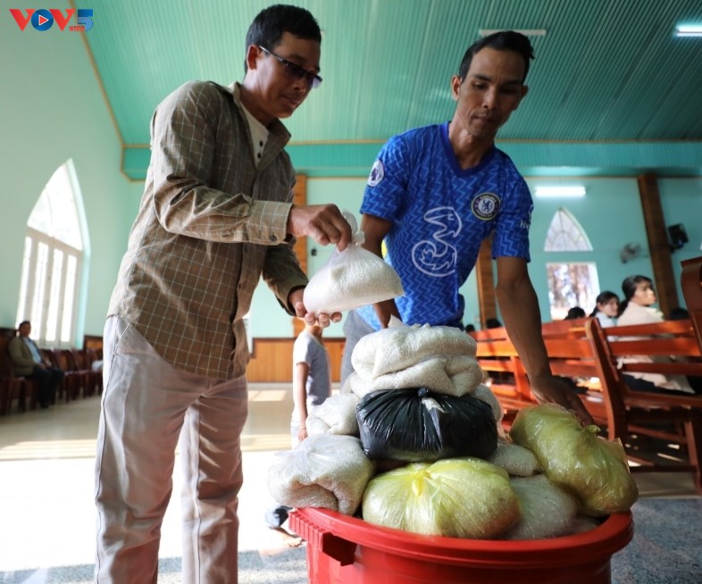 In Plei Mo Nu village the haves are willing to help the haves-not by donating a little money and rice at every service, which the church will distribute to needy villagers. This custom unites dignitaries, and parishioners.