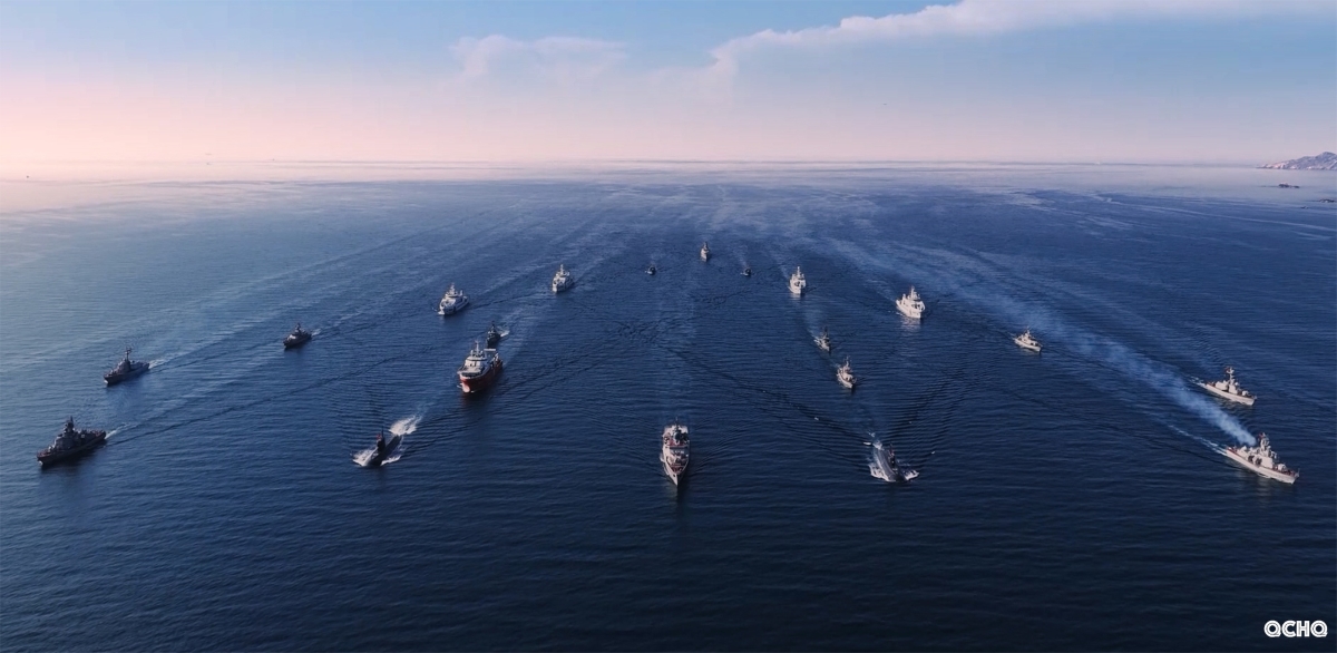 Armed forces perform a parade at sea.