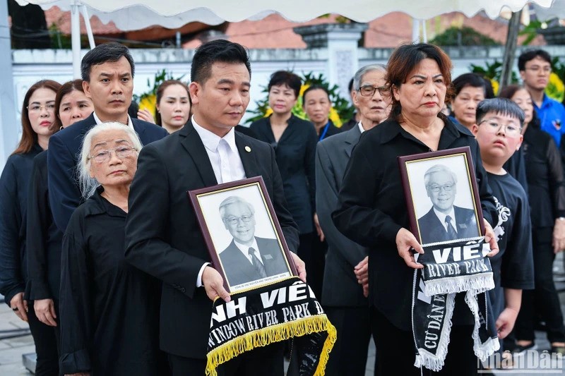 Tens of thousands of people come to the home village of General Secretary Nguyen Phu Trong in Lai Da village, Dong Hoi commune, Dong Anh district, Hanoi to mourn the Party leader. (Photo: Nhan Dan newspaper) |