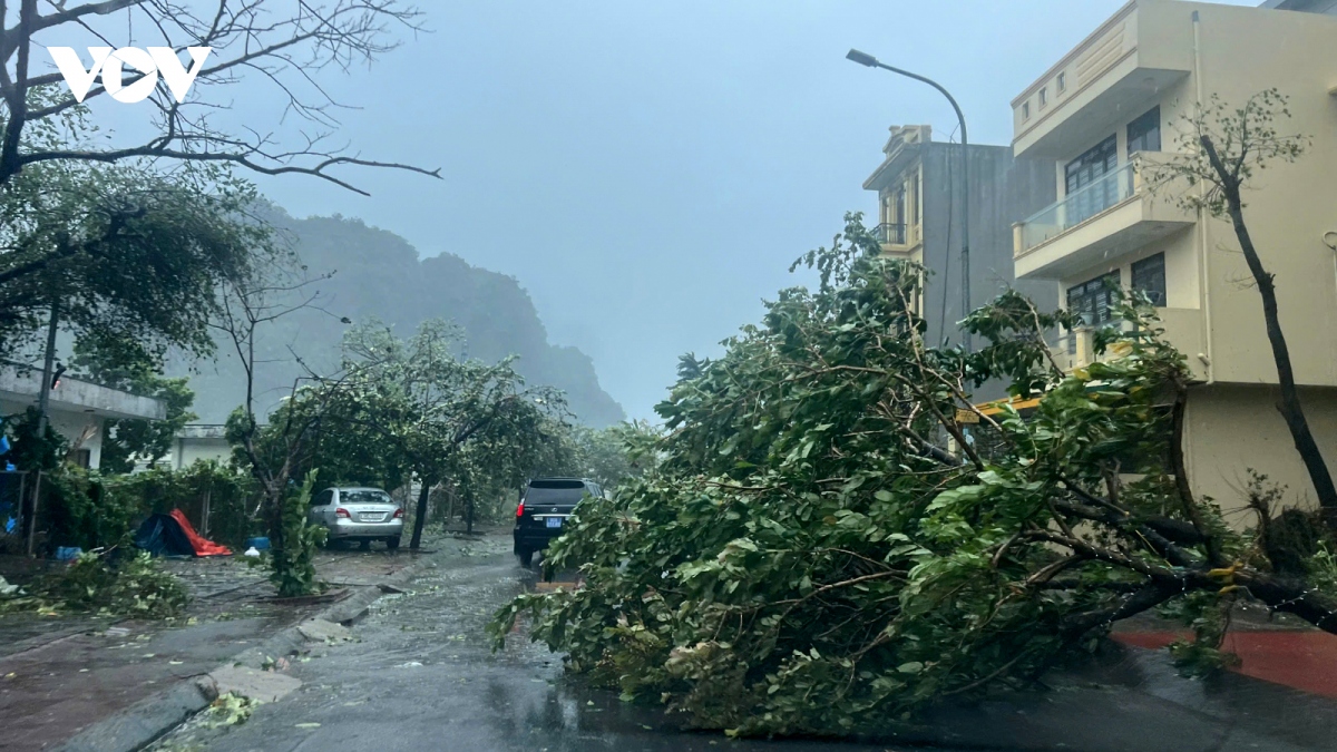 In Ha Long city of Quang Ninh province, all the trees on the street were knocked down and some cars were overturned. Gale-force winds broke the glass windows of many houses.