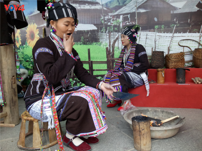 A Lu ethnic woman is dyeing her teeth next to the fire stove. Photo: VOV4 |
