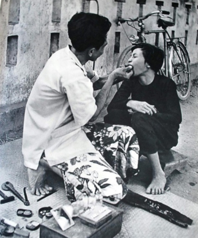 A woman had her teeth blackened on the street. Photo: Doan Trang/luocsutocviet.wordpress.com/ |