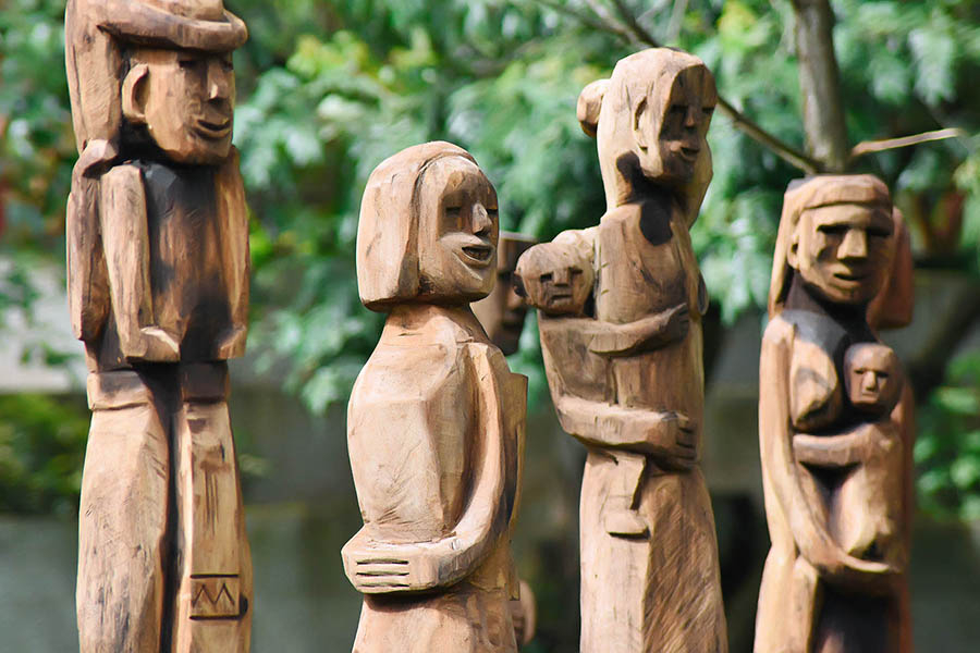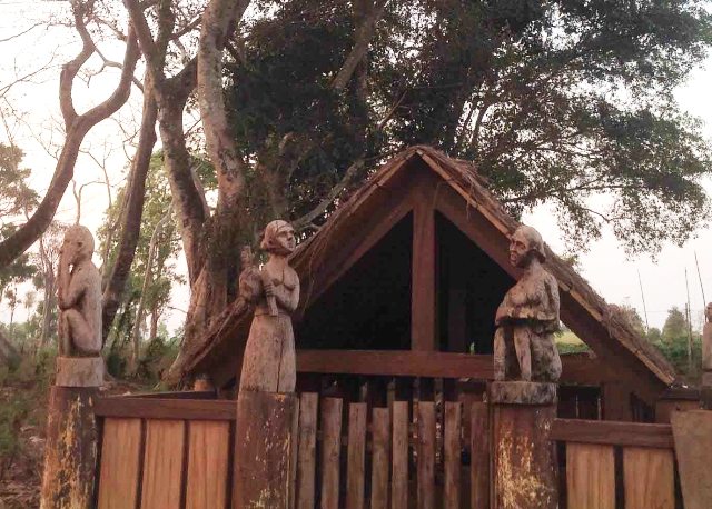 The grave statues often depict birds, beasts, household utensils, and groups of people standing, sitting, or hugging each other. The most popular statues are people sitting with their elbows on their knees, their arms holding their faces, and sad-looking eyes. People say the statues represent the relatives, sitting beside the grave to talk with the dead person. There are joyful statues of people beating drums and gongs, pounding rice, men and women having sex, and pregnant women. The grave statues illustrate their belief that death is just a start in the spiritual world.
