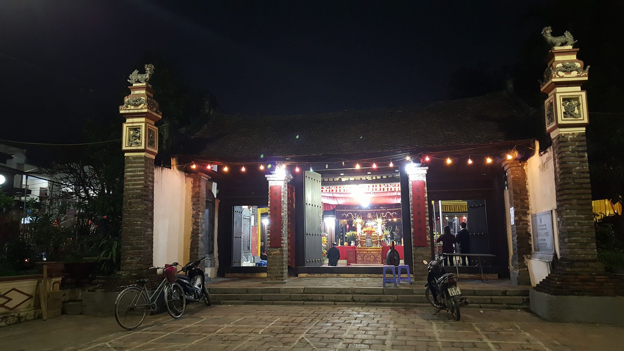 La Phu communal house at night on the 13th day of the first lunar month when the traditional procession of Mr. Pig is held. (Photo: Dat Le)