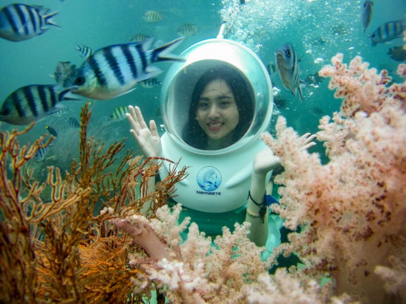 To explore the diversified marine eco-system, a service of sea walking has been offered and soon become very popular. With this service, visitors can walk under the sea bed with the depth of 5 to 6 meters above the sea level and explore various kinds of coral reef and fish.