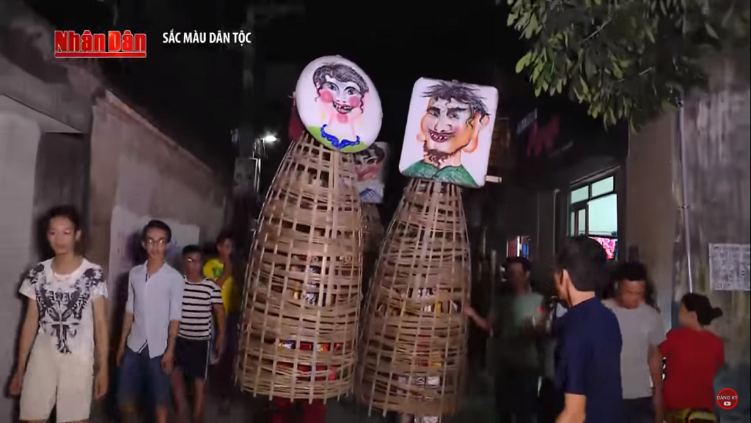 Making the figures takes many steps. They draw the face of Mr. Dung and Ms. Da on large bamboo sieves and paint it red and white. The body of the dummy is up to 1m5 tall and is made by knitting bamboo threads. Smaller figures resemble the offsprings of Mr. Dung and Ms. Da. Villagers stick red flowers behind the ears of Ms. Da and her daughters in the belief that it will expel evils. Bùi Đình Tháp, a local of Quang Lang village, said: "It takes village chiefs 10 days ahead of the festival to make the dummies. The faces of Mr. Dung and Ms. Da are drawn in a humorous way so it makes festival goers feel happy."