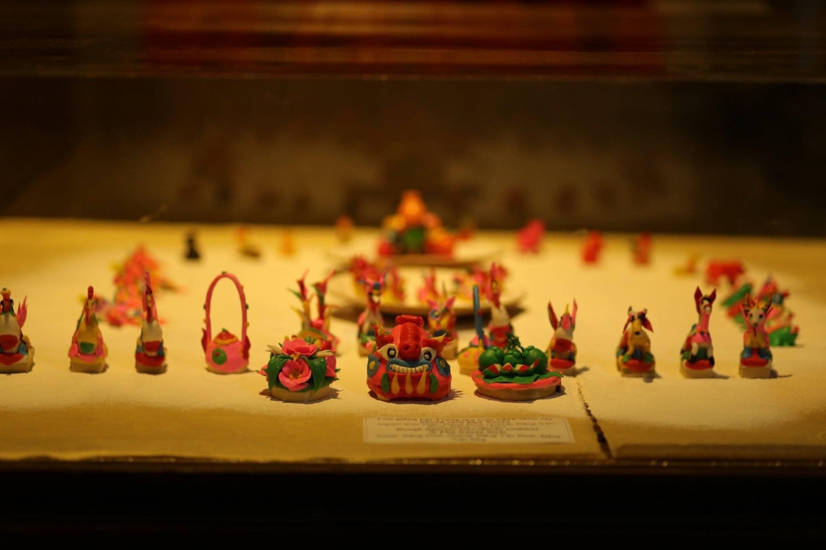 Meanwhile, craftsmen in Hang Ma, Hang Luoc, Hang Duong, and Dong Xuan street in Hanoi’s Old Quarter make toy figurines from glutinous powder mixed with colors, and then polish them to keep them for longer time. The toys can be in the shapes of cattle like horses, buffaloes, goats, pigs, fish, shrimp, elephants, tigers, or fruits. Some toys even depict people’s daily lives like a buffalo herding boy or children performing lion dances.