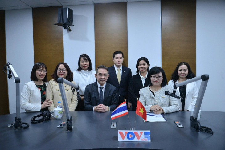 ท่าน นิกรเดช พลางกูร เอกอัครราชทูตไทย ณ กรุงฮานอยให้สัมภาษณ์และถ่ายภาพร่วมกับทีมภาคภาษาไทย สถานีวิทยุเวียดนามเมื่อต้นปี 2024 |