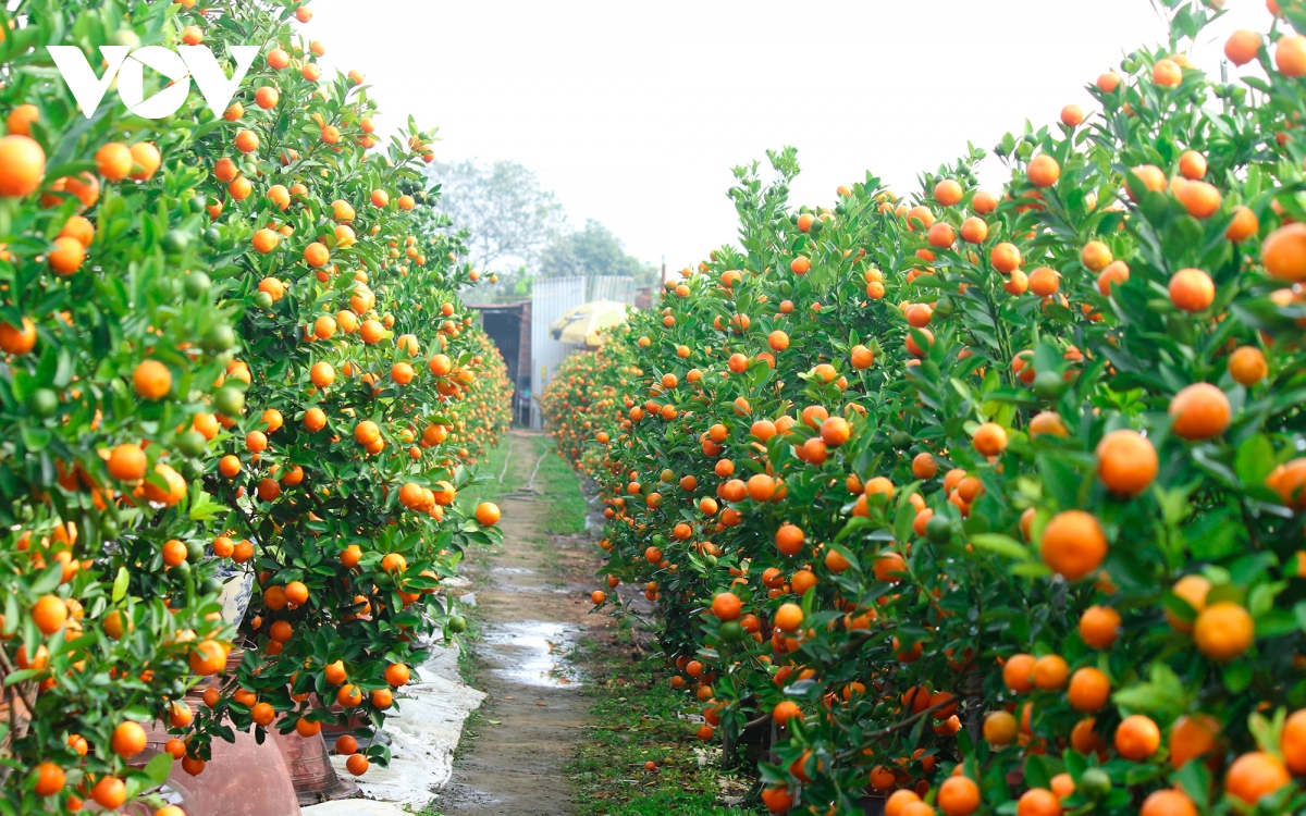 หมู่บ้านตื๊อเลียนในเขตเตยโห่เป็นหมู่บ้านที่ขึ้นชื่ออย่างมากเรื่องการปลูกต้นส้มจี๊ดสำหรับตรุษเต๊ต |