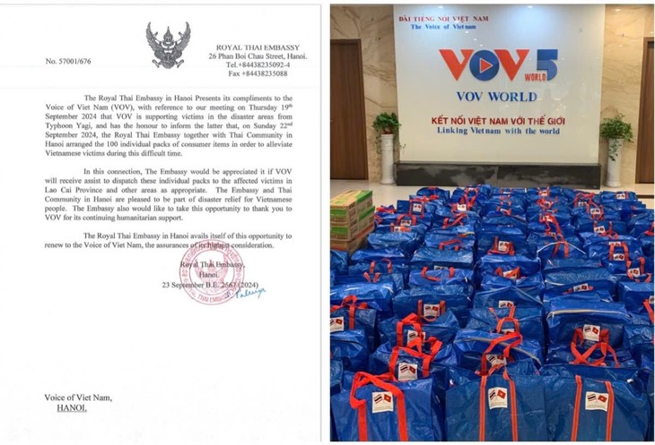 เมื่อเดือนกันยายนปี 2024 สถานทูตไทย ณ กรุงฮานอย ได้มอบถุงยังชีพ 300 ชุดให้แก่ทางการเวียดนามเพื่อช่วยเหลือผู้ประสบภัยจากพายุยางิ โดยมอบถุงยังชีพ 100 ชุด ซึ่งมีของกินของใช้ต่างๆ เช่น นม บะหมี่กึ่งสำเร็จรูป ปลากระป๋อง น้ำดื่ม สบู่ซักผ้า สบู่อาบน้ำ ยาสีฟัน แปรงสีฟันและเกลือให้แก่ส่วนกระจายเสียงต่างประเทศหรือวีโอวี 5 ของสถานีวิทยุเวียดนามเพื่อสนับสนุนกิจกรรมช่วยเหลือผู้ประสบภัยในจังหวัดต่างๆในภาคเหนือเวียดนาม รวมทั้ง ลาวกาย ฟู้เถาะและเตวียนกวาง นอกจากนี้ส่วนกระจายเสียงต่างประเทศยังได้รับการสนับสนุนจากชาวเวียดนามในต่างประเทศจำนวนมากผ่านการสนับสนุนเงินและสิ่งของบรรเทาทุกข์ให้แก่กิจกรรมจิตอาสา ซึ่งผู้จัดทำรายการต้องขอขอบคุณการสนับสนุนและการช่วยเหลือต่าง ๆ เป็นอย่างมาก ซึ่งแสดงให้เห็นว่า วีโอวีไม่เพียงแต่เป็นสำนักงานสื่อสารมลชนที่น่าเชื่อถือ นำเสนอข่าวที่เป็นทางการอย่างถูกต้องและรวดเร็วเท่านั้น แต่ยังเป็นสื่อกลางในการกิจกรรมสังคมต่างๆอีกด้วย