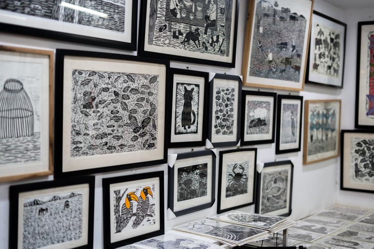 หลังจากสูญเสียมือทั้งสองข้าง นาย Mon Chea ใช้ลำแขนจับปากกาเพื่อร่างเส้น แล้วใช้มีดแกะสลักลายบนแผ่นไม้ โรยหมึกแล้วพิมพ์งานลงบนกระดาษ ซึ่งวิธีวาดแบบนี้ทำให้แขนสองข้างของเขาอ่อนล้า เจ็บและเมื่อย ดังนั้น เขาจึงวาดภาพได้เพียงไม่กี่ชั่วโมงต่อวัน ทำให้ผลงานทุกชิ้นต้องใช้เวลานานก โดยผลงานของเขาส่วนใหญ่เป็นภาพขาวดำ แม้ไม่มีสีสันที่หลากหลายแต่กลับเต็มไปด้วยความหมายและคุณค่าอันลึกซึ้ง ซึ่งสะท้อนแง่มุมชีวิตประจำวัน วัฒนธรรม และทิวทัศน์ธรรมชาติของประเทศกัมพูชา โดยเฉพาะในจังหวัดเสียมเรียบที่เขากำลังอาศัยและทำงานอยู่ ส่วนผลงานของเขาได้มีการจัดแสดงที่งานนิทรรศการภาพวาดหลายงานทั้งในพื้นที่เซียมเรียบ กรุงพนมเปญ และต่างประเทศ โดยหลาย ๆ คนได้กล่าวชื่นชมว่า ถึงแม้เป็นผู้พิการ แต่เขายังคงมุ่งมั่นพัฒนาทักษะที่ยอดเยี่ยมเพือให้ทุกคนได้เห็นถึงคุณค่าของความพยายาม