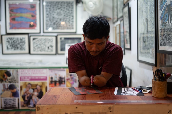 แต่ในที่สุดก็ถึงจุดพลิกชีวิตในช่วงปี 2015 เมื่อเขาได้รับการแนะนำให้เข้าร่วมหลักสูตรฝึกอบรมด้านศิลปะสำหรับผู้พิการที่จังหวัดกัมปอต แม้ยังรู้สึกสงสัยว่าจะเรียนวาดภาพโดยไม่ใช้มือได้หรือไม่ แต่นาย Mon Chea ก็ยังมุ่งมั่นตั้งใจด้วยพลังแห่งความหวัง