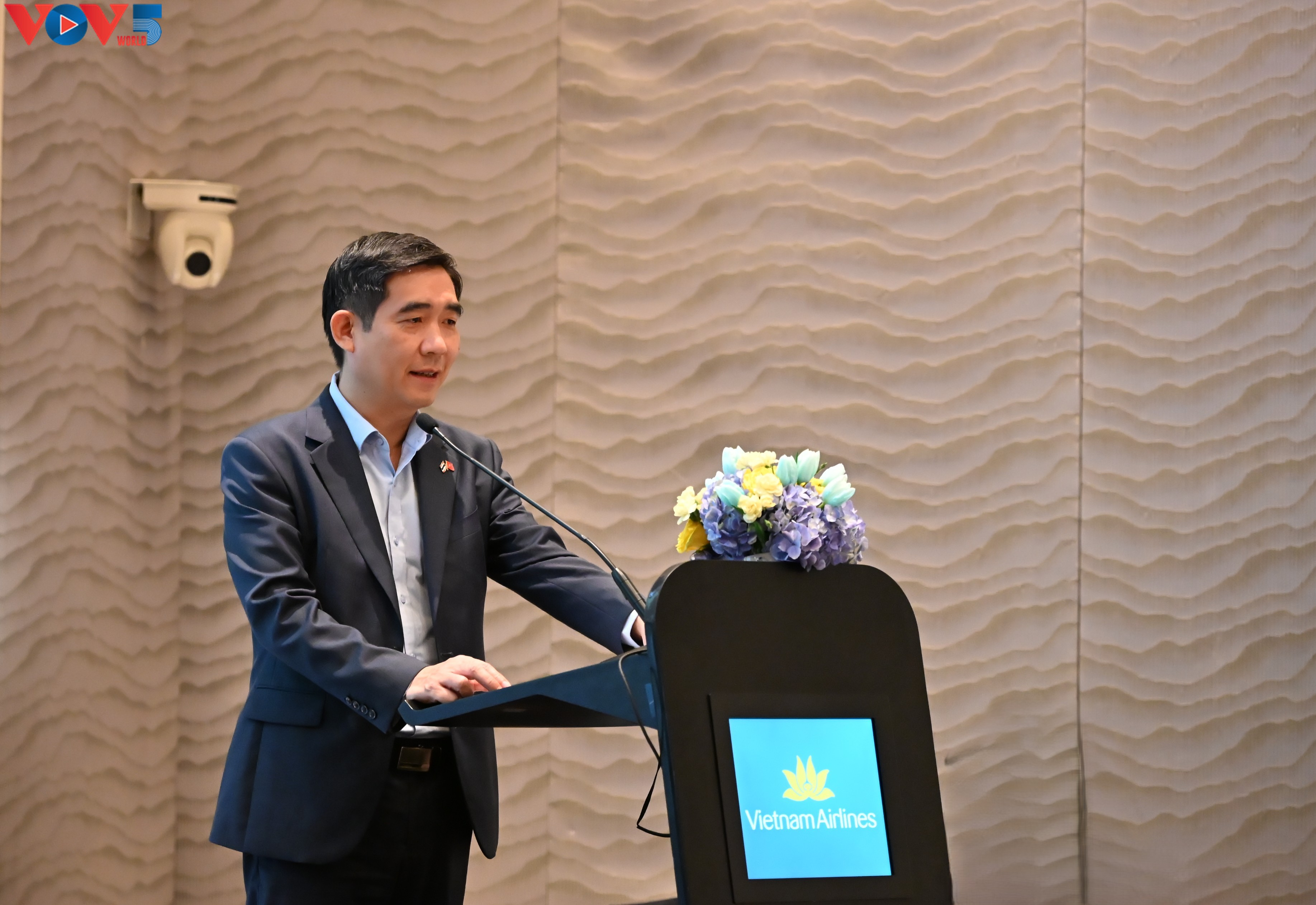 “ปีนี้ รำลึกครบรอบ 50 ปีการสถาปนาความสัมพันธ์ทางการทูตระหว่างเวียดนามกับไทย เรามีความภาคภูมิใจที่มีส่วนร่วมเชื่อมโยงด้านการทูต การเมือง เศรษฐกิจ สังคม การท่องเที่ยว โดยนักท่องเที่ยวจากยุโรป อเมริกาเหนือและอเมริกาใต้ที่มาเที่ยวไทยก็แวะมาเที่ยวเวียดนาม”.