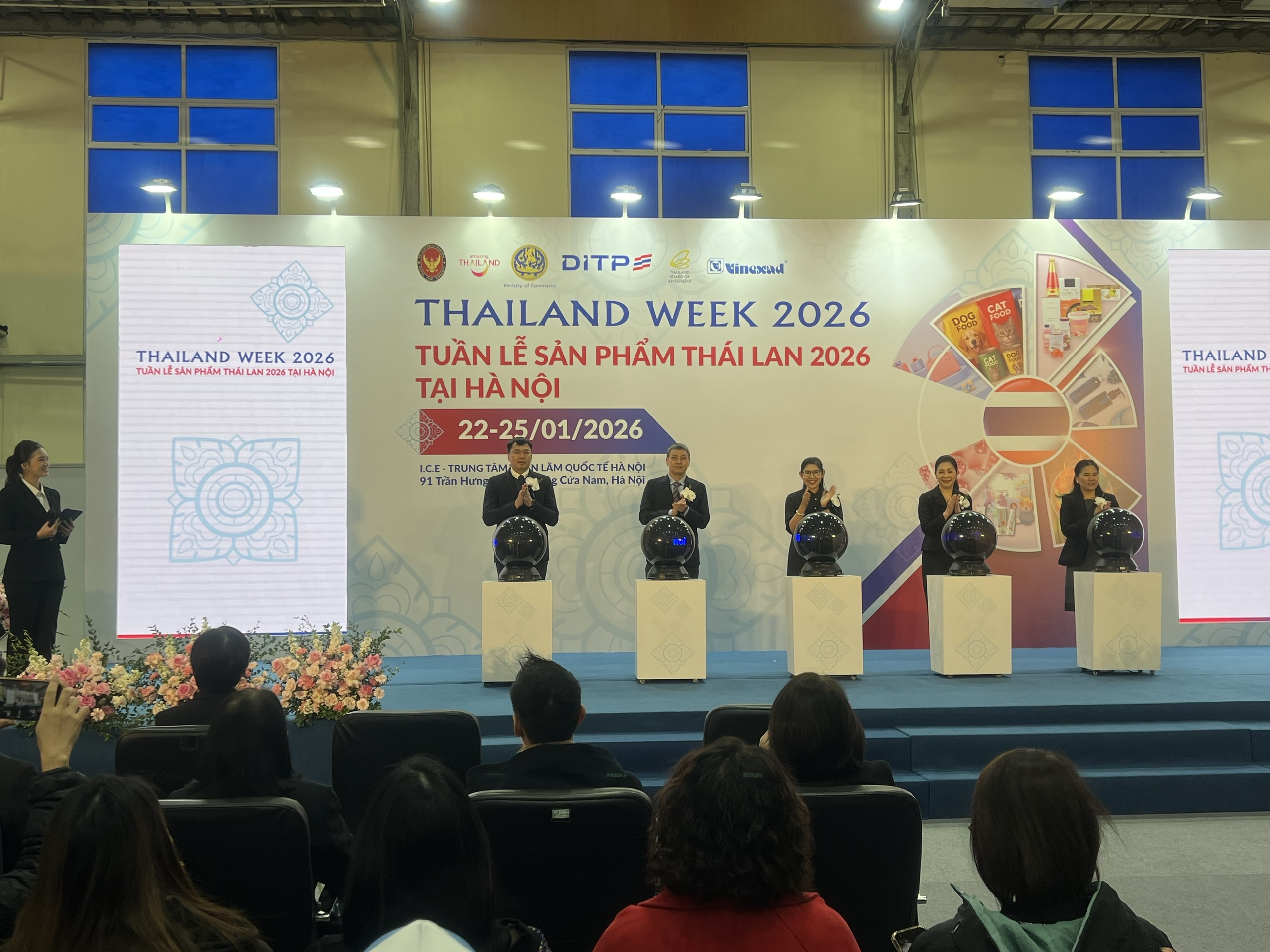 งาน Thailand Week 2026 จะจัดจนถึงวันที่ 25 เดือนนี้ มีการออกบูธกว่า 100 บูธ ได้รับการคาดหวังที่จะมีส่วนร่วมส่งเสริมความร่วมมือทางการค้าที่ยั่งยืนระหว่างเวียดนามกับไทย พร้อมทั้งยืนยันถึงสถานะและชื่อเสียงของสินค้าไทยในตลาดเวียดนาม.