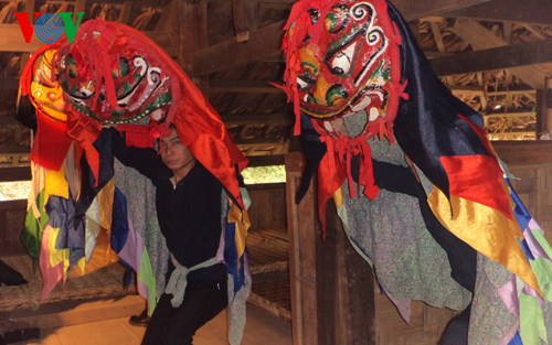 (VOVworld) - ชนกลุ่มน้อยเผ่าหนุ่งที่จังหวัดหลางเซินมักจะเชิดสิงโตหรือกีหลั่นในช่วงตรุษเต๊ดประเพณี เทศกาลหล่งต่ง เทศกาลไหว้พระจันทน์และงานขึ้นบ้านใหม่ ซึ่งใบหน้าของสิงโตมีการผสมระหว่างใบหน้าของสิงโตกับใบหน้าของแมว สิงโตจ่าฝูงมีแผงขนสีดำ ส่วนลูกสิงโตมีแผงขนสีเขียว ในการเชิดสิงโตของชนกลุ่มน้อยเผ่าหนุ่ง มีท่ารำที่ยากและยาวที่สุดคือท่ารำการจับตัวสิงโตที่แบ่งเป็นฉากต่างๆ โดยแค่ผู้มีประสบการณ์สามารถเข้าร่วมเท่านั้น ต่อไปนี้ ขอเชิญท่านชมการเชิดสิงโต ซึ่งเป็นเอกลักษณ์วัฒนธรรมของชนกลุ่มน้อยเผ่าหนุ่งที่หมู่บ้านโต่งเหรี่ยง ตำบลหายเอี๊ยน อำเภอกาวหลก จังหวัดหลางเซิน ...