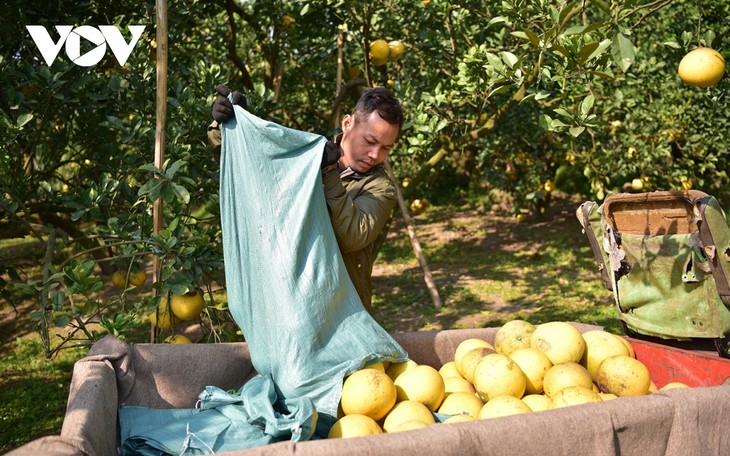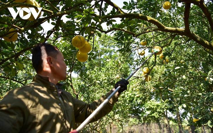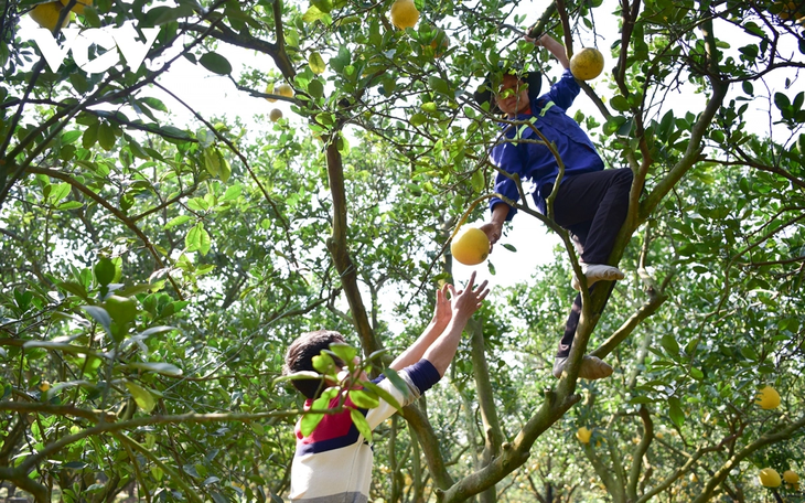 | เนื่องจากพื้นที่ปลูกส้มโอมีขนาดใหญ่ เจ้าของสวนจึงต้องจ้างแรงงานมาเก็บผลผลิต แรงงานหลายคนในหมู่บ้านมีรายได้เพิ่มเติมจากการเก็บส้มโอเฉลี่ย 270,000-300,000 ด่ง/คน/วัน |