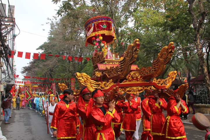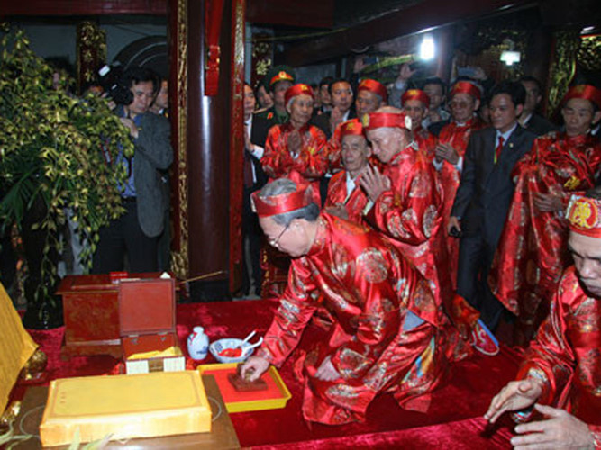 ![]() เทศกาลขอพระราชลัญจกรวิหารเจิ่นมีขึ้นในระหว่างวันที่๑๓-๑๕เดือนอ้ายตามจันทรคติเพื่อเชิดชูสดุดีส่วนอุทิศที่ยิ่งใหญ่ของราชวงศ์เจิ่นและเชิดชูคุณค่าของขนบธรรมเนียมประเพณีในอดีต