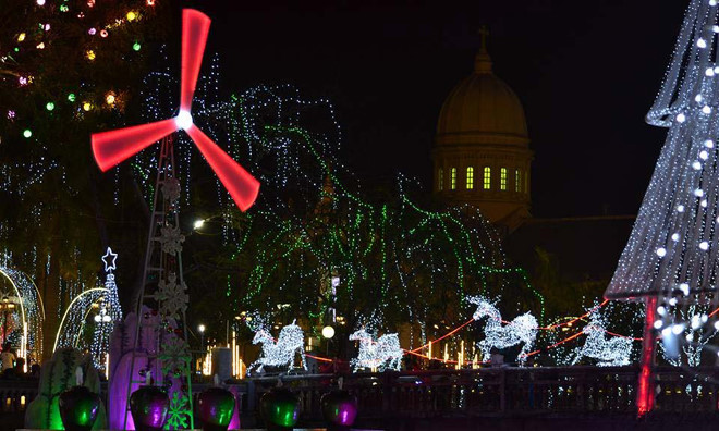 ![]() ซึ่งถนนใหญ่ทุกสายได้ถูกประดับประดาด้วยหลอดไฟหลากสีดูงามตายิ่งนัก