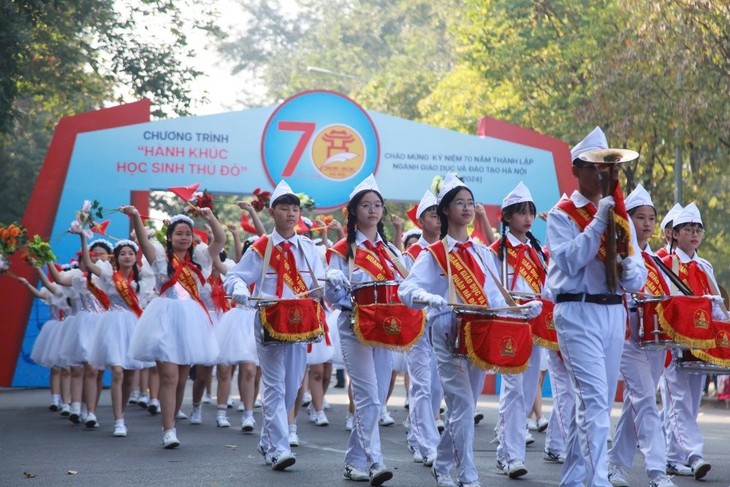 ขบวนพาเหรดของนักเรียนจากโรงเรียนในกรุงฮานอย (ภาพจาก Hồng Phượng/Báo Tin tức)