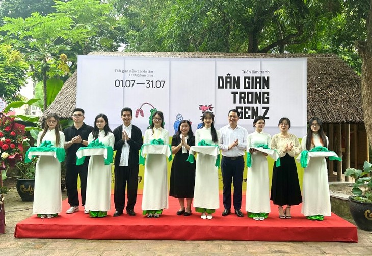 นิทรรศการภาพวาดในหัวข้อ “ศิลปะพื้นบ้าน Gen Z ” ได้เปิดตัวที่วันเหมียวหรือวิหารวรรณกรรมเวียดนามเพื่อนำเสนอมุมมองใหม่ที่สร้างสรรค์และน่าสนใจเกี่ยวกับวัฒนธรรมพื้นบ้านเวียดนาม (ภาพจาก สำนักงานการท่องเที่ยวฮานอย)