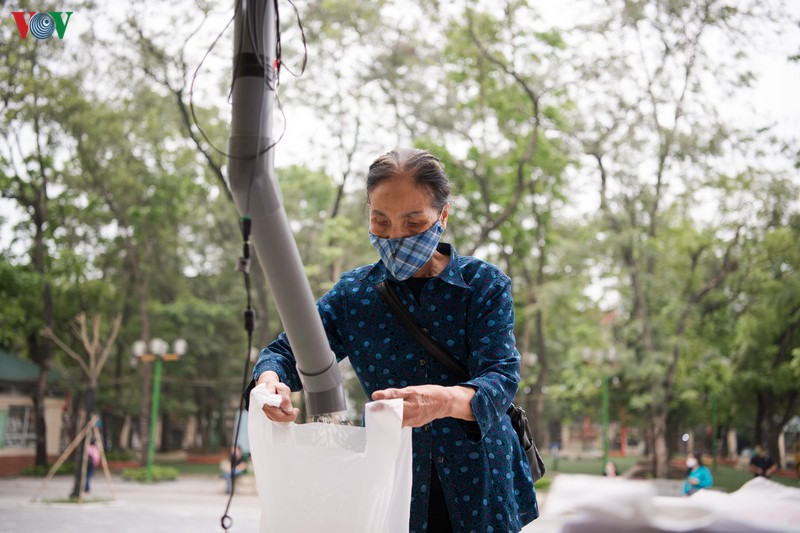 นาง เหงวียนถิที อายุ 67 ปี คนเก็บขยะได้เผยว่า "ในช่วงเวลาที่ลำบากนี้ การแจกข้าวฟรีมีความหมายเป็นอย่างมาก ดิฉันขอขอบคุณมากๆ" |