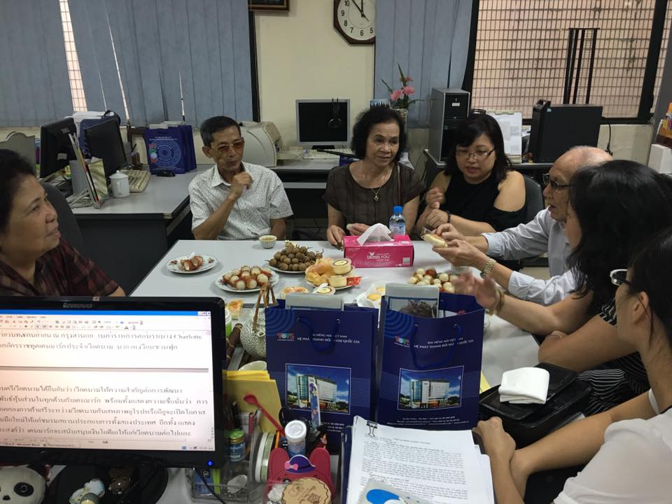 ![]() เจ้าหน้าที่หลายรุ่นของรายการภาคภาษาไทยแลกเปลี่ยนประสบการณ์ในการทำงาน