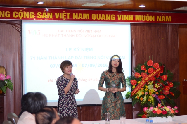 (VOVWorld)-ในโอกาสฉลองครบรอบ๗๑ปีการก่อตั้งสถานีวิทยุเวียดนาม ซึ่งตรงกับวันที่๗กันยายน เช้าวันที่๖กันยายน ส่วนกระจายเสียงต่างประเทศหรือวีโอวี๕ของสถานีวิทยุเวียดนามได้จัดการพบปะสังสรรค์เจ้าหน้าที่วีโอวี๕หลายรุ่น โดยมีนาย เหงวียนเท้กี๋ ประธานสถานีวิทยุเวียดนาม นาย หวูหาย รองประธานสถานีวิทยุเวียดนามและเจ้าหน้าที่วีโอวี๕เกือบ๑๐๐คนเข้าร่วม นี่เป็นโอกาสที่ดีเพื่อให้เจ้าหน้าที่รุ่นต่างๆพบปะสังสรรค์กันและแลกเปลี่ยนประสบการณ์ในการทำงาน.