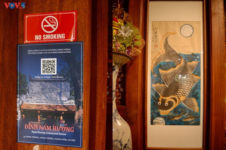 ส่วนที่แขวงห่างจ๊ง ศาลเจ้านามเฮืองพร้อมภาพพื้นเมืองห่างจ๊งก็ได้มีการติด QR Code เพื่ออำนวยความสะดวกในการศึกษาข้อมูลให้แก่ผู้เข้าชม (ภาพ: QR Code ติดอยู่ด้านซ้ายประตูทางเข้าศาลเจ้านามเฮือง) |