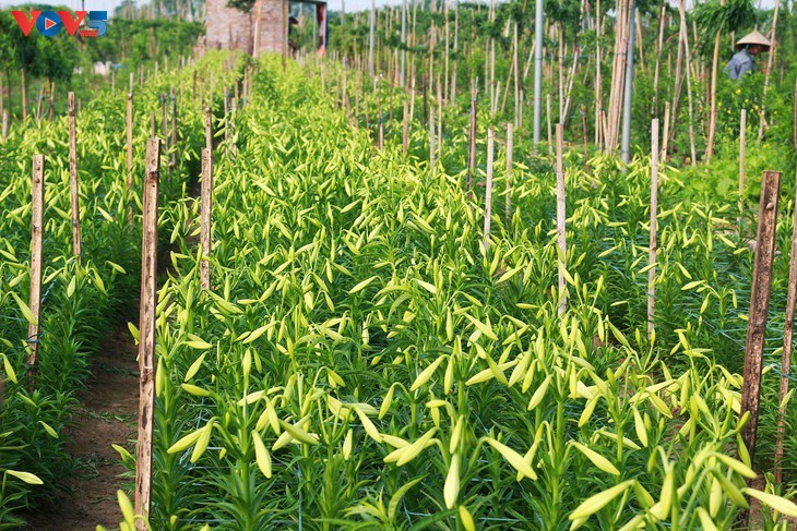 ช่อลิลลี่ 10 ดอก มีราคาอยู่ที่ประมาณ 35,000 ด่ง |