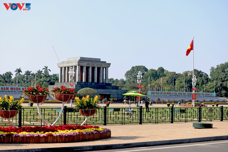 | บริเวณจัตุรัสบาดิ่ง ศูนย์กลางทางการเมืองของประเทศ ได้รับการตกแต่งอย่างมีเกียรติศักดิ์ศรี ซึ่งแสดงให้เห็นถึงความสำคัญสุดพิเศษของการประชุมฯ |
